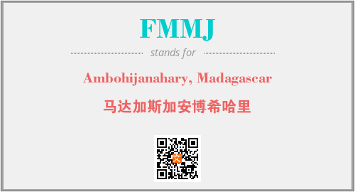上述内容是“Ambohijanahary, Madagascar”作为“FMMJ”的缩写,解释为“马达加斯加安博希哈里”时的信息,以及英文缩略词FMMJ所代表的英文单词,其对应的中文拼音、详细解释以及在英文中的流行度和相关分类、应用领域及应用示例等。
