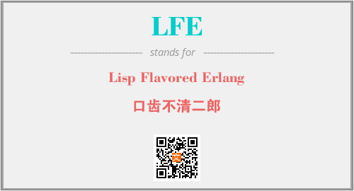 英文缩略词“LFE”经常作为“Lisp Flavored Erlang”的英文缩写来使用,中文表示:“口齿不清二郎”。本文将详细介绍英文缩写词LFE所代表英文单词,其对应的中文拼音、详细解释以及在英语中的流行度。此外,还有关于缩略词LFE的分类、应用领域及相关应用示例等。