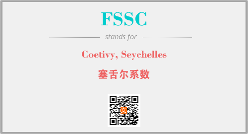 英文缩略词“FSSC”经常作为“Coetivy, Seychelles”的英文缩写来使用,中文表示:“塞舌尔系数”。本文将详细介绍英文缩写词FSSC所代表英文单词,其对应的中文拼音、详细解释以及在英语中的流行度。此外,还有关于缩略词FSSC的分类、应用领域及相关应用示例等。