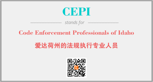 上述内容是“Code Enforcement Professionals of Idaho”作为“CEPI”的缩写,解释为“爱达荷州的法规执行专业人员”时的信息,以及英文缩略词CEPI所代表的英文单词,其对应的中文拼音、详细解释以及在英文中的流行度和相关分类、应用领域及应用示例等。
