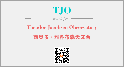 英文缩略词“TJO”经常作为“Theodor Jacobsen Observatory”的英文缩写来使用,中文表示:“西奥多·雅各布森天文台”。本文将详细介绍英文缩写词TJO所代表英文单词,其对应的中文拼音、详细解释以及在英语中的流行度。此外,还有关于缩略词TJO的分类、应用领域及相关应用示例等。