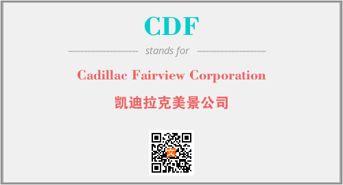 上述内容是“Cadillac Fairview Corporation”作为“CDF”的缩写,解释为“凯迪拉克美景公司”时的信息,以及英文缩略词CDF所代表的英文单词,其对应的中文拼音、详细解释以及在英文中的流行度和相关分类、应用领域及应用示例等。