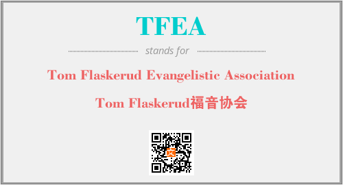 上述内容是“Tom Flaskerud Evangelistic Association”作为“TFEA”的缩写,解释为“Tom Flaskerud福音协会”时的信息,以及英文缩略词TFEA所代表的英文单词,其对应的中文拼音、详细解释以及在英文中的流行度和相关分类、应用领域及应用示例等。