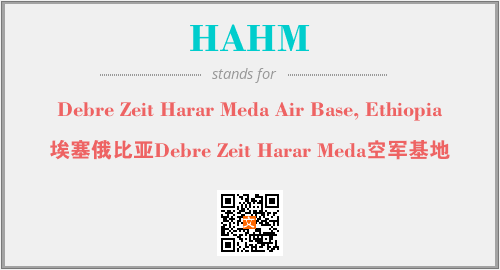上述内容是“Debre Zeit Harar Meda Air Base, Ethiopia”作为“HAHM”的缩写,解释为“埃塞俄比亚Debre Zeit Harar Meda空军基地”时的信息,以及英文缩略词HAHM所代表的英文单词,其对应的中文拼音、详细解释以及在英文中的流行度和相关分类、应用领域及应用示例等。
