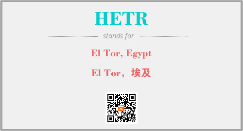 上述内容是“El Tor, Egypt”作为“HETR”的缩写,解释为“El Tor,埃及”时的信息,以及英文缩略词HETR所代表的英文单词,其对应的中文拼音、详细解释以及在英文中的流行度和相关分类、应用领域及应用示例等。