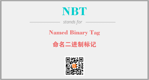 英文缩略词“NBT”经常作为“Named Binary Tag”的英文缩写来使用,中文表示:“命名二进制标记”。本文将详细介绍英文缩写词NBT所代表英文单词,其对应的中文拼音、详细解释以及在英语中的流行度。此外,还有关于缩略词NBT的分类、应用领域及相关应用示例等。