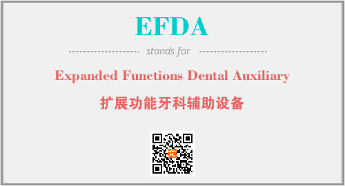 上述内容是“Expanded Functions Dental Auxiliary”作为“EFDA”的缩写,解释为“扩展功能牙科辅助设备”时的信息,以及英文缩略词EFDA所代表的英文单词,其对应的中文拼音、详细解释以及在英文中的流行度和相关分类、应用领域及应用示例等。