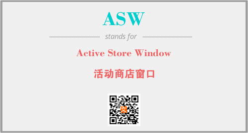 英文缩略词“ASW”经常作为“Active Store Window”的英文缩写来使用,中文表示:“活动商店窗口”。本文将详细介绍英文缩写词ASW所代表英文单词,其对应的中文拼音、详细解释以及在英语中的流行度。此外,还有关于缩略词ASW的分类、应用领域及相关应用示例等。