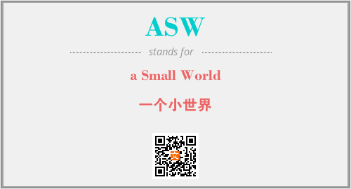 英文缩略词“ASW”经常作为“a Small World”的英文缩写来使用,中文表示:“一个小世界”。本文将详细介绍英文缩写词ASW所代表英文单词,其对应的中文拼音、详细解释以及在英语中的流行度。此外,还有关于缩略词ASW的分类、应用领域及相关应用示例等。