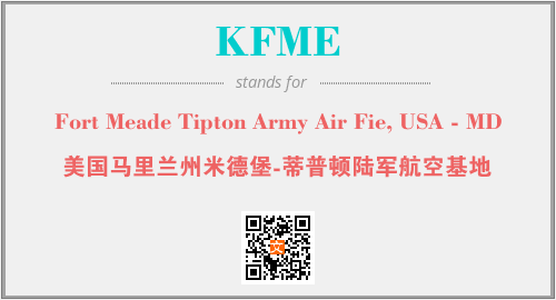 上述内容是“Fort Meade Tipton Army Air Fie, USA - MD”作为“KFME”的缩写,解释为“美国马里兰州米德堡-蒂普顿陆军航空基地”时的信息,以及英文缩略词KFME所代表的英文单词,其对应的中文拼音、详细解释以及在英文中的流行度和相关分类、应用领域及应用示例等。