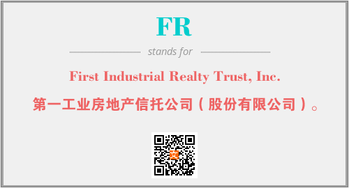 上述内容是“First Industrial Realty Trust, Inc.”作为“FR”的缩写,解释为“第一工业房地产信托公司(股份有限公司)。”时的信息,以及英文缩略词FR所代表的英文单词,其对应的中文拼音、详细解释以及在英文中的流行度和相关分类、应用领域及应用示例等。