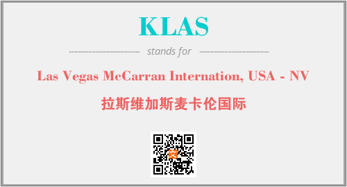 上述内容是“Las Vegas McCarran Internation, USA - NV”作为“KLAS”的缩写,解释为“拉斯维加斯麦卡伦国际”时的信息,以及英文缩略词KLAS所代表的英文单词,其对应的中文拼音、详细解释以及在英文中的流行度和相关分类、应用领域及应用示例等。