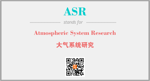 上述内容是“Atmospheric System Research”作为“ASR”的缩写,解释为“大气系统研究”时的信息,以及英文缩略词ASR所代表的英文单词,其对应的中文拼音、详细解释以及在英文中的流行度和相关分类、应用领域及应用示例等。