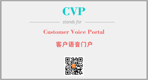 英文缩略词“CVP”经常作为“Customer Voice Portal”的英文缩写来使用,中文表示:“客户语音门户”。本文将详细介绍英文缩写词CVP所代表英文单词,其对应的中文拼音、详细解释以及在英语中的流行度。此外,还有关于缩略词CVP的分类、应用领域及相关应用示例等。