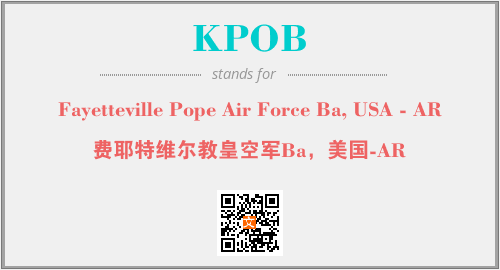 以上为Fayetteville Pope Air Force Ba, USA - AR英文缩略词KPOB的中文解释,以及该英文缩写在英语的流行度、分类和应用领域方面的信息。