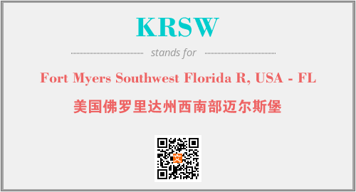 上述内容是“Fort Myers Southwest Florida R, USA - FL”作为“KRSW”的缩写,解释为“美国佛罗里达州西南部迈尔斯堡”时的信息,以及英文缩略词KRSW所代表的英文单词,其对应的中文拼音、详细解释以及在英文中的流行度和相关分类、应用领域及应用示例等。