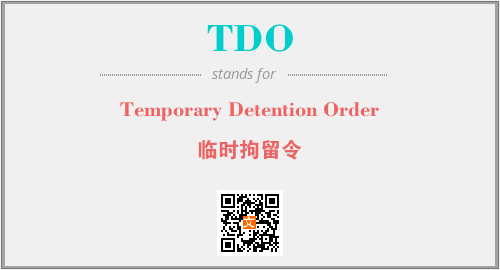上述内容是“Temporary Detention Order”作为“TDO”的缩写,解释为“临时拘留令”时的信息,以及英文缩略词TDO所代表的英文单词,其对应的中文拼音、详细解释以及在英文中的流行度和相关分类、应用领域及应用示例等。