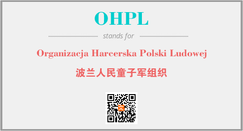 上述内容是“Organizacja Harcerska Polski Ludowej”作为“OHPL”的缩写,解释为“波兰人民童子军组织”时的信息,以及英文缩略词OHPL所代表的英文单词,其对应的中文拼音、详细解释以及在英文中的流行度和相关分类、应用领域及应用示例等。