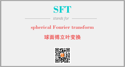 上述内容是“spherical Fourier transform”作为“SFT”的缩写,解释为“球面傅立叶变换”时的信息,以及英文缩略词SFT所代表的英文单词,其对应的中文拼音、详细解释以及在英文中的流行度和相关分类、应用领域及应用示例等。