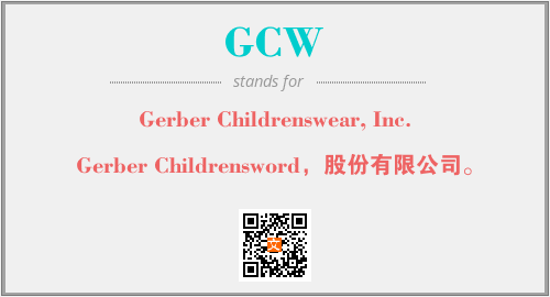 上述内容是“Gerber Childrenswear, Inc.”作为“GCW”的缩写,解释为“Gerber Childrensword,股份有限公司。”时的信息,以及英文缩略词GCW所代表的英文单词,其对应的中文拼音、详细解释以及在英文中的流行度和相关分类、应用领域及应用示例等。