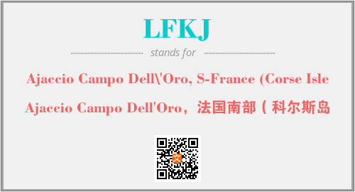 上述内容是“Ajaccio Campo Dell\'Oro, S-France (Corse Isle”作为“LFKJ”的缩写,解释为“Ajaccio Campo Dell'Oro,法国南部(科尔斯岛”时的信息,以及英文缩略词LFKJ所代表的英文单词,其对应的中文拼音、详细解释以及在英文中的流行度和相关分类、应用领域及应用示例等。