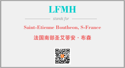 上述内容是“Saint-Etienne Boutheon, S-France”作为“LFMH”的缩写,解释为“法国南部圣艾蒂安·布森”时的信息,以及英文缩略词LFMH所代表的英文单词,其对应的中文拼音、详细解释以及在英文中的流行度和相关分类、应用领域及应用示例等。