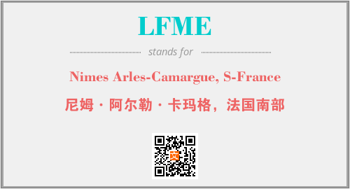 上述内容是“Nimes Arles-Camargue, S-France”作为“LFME”的缩写,解释为“尼姆·阿尔勒·卡玛格,法国南部”时的信息,以及英文缩略词LFME所代表的英文单词,其对应的中文拼音、详细解释以及在英文中的流行度和相关分类、应用领域及应用示例等。