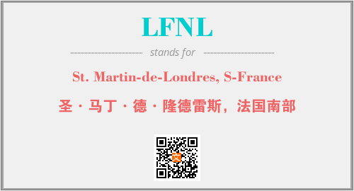 上述内容是“St. Martin-de-Londres, S-France”作为“LFNL”的缩写,解释为“圣·马丁·德·隆德雷斯,法国南部”时的信息,以及英文缩略词LFNL所代表的英文单词,其对应的中文拼音、详细解释以及在英文中的流行度和相关分类、应用领域及应用示例等。