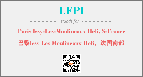 上述内容是“Paris Issy-Les-Moulineaux Heli, S-France”作为“LFPI”的缩写,解释为“巴黎Issy Les Moulineaux Heli,法国南部”时的信息,以及英文缩略词LFPI所代表的英文单词,其对应的中文拼音、详细解释以及在英文中的流行度和相关分类、应用领域及应用示例等。
