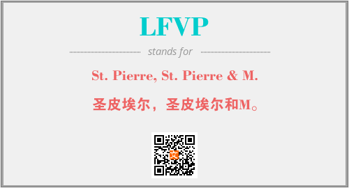 上述内容是“St. Pierre, St. Pierre & M.”作为“LFVP”的缩写,解释为“圣皮埃尔,圣皮埃尔和M。”时的信息,以及英文缩略词LFVP所代表的英文单词,其对应的中文拼音、详细解释以及在英文中的流行度和相关分类、应用领域及应用示例等。