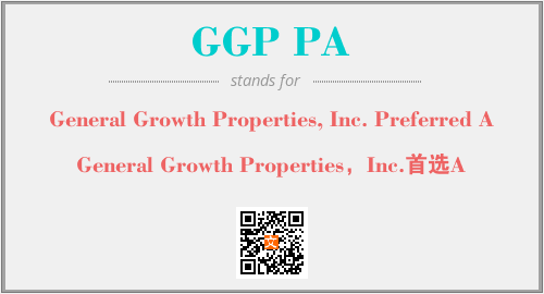 英文缩略词“GGP PA”经常作为“General Growth Properties, Inc. Preferred A”的英文缩写来使用,中文表示:“General Growth Properties,Inc.首选A”。本文将详细介绍英文缩写词GGP PA所代表英文单词,其对应的中文拼音、详细解释以及在英语中的流行度。此外,还有关于缩略词GGP PA的分类、应用领域及相关应用示例等。