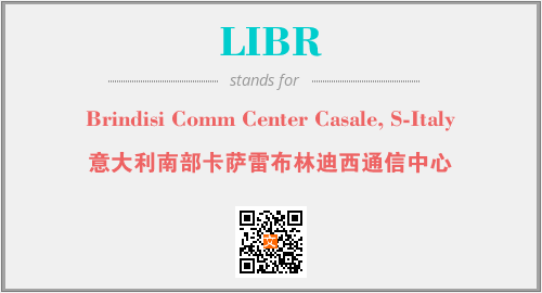 以上为Brindisi Comm Center Casale, S-Italy英文缩略词LIBR的中文解释,以及该英文缩写在英语的流行度、分类和应用领域方面的信息。