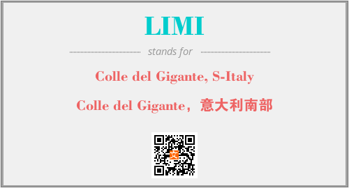 上述内容是“Colle del Gigante, S-Italy”作为“LIMI”的缩写,解释为“Colle del Gigante,意大利南部”时的信息,以及英文缩略词LIMI所代表的英文单词,其对应的中文拼音、详细解释以及在英文中的流行度和相关分类、应用领域及应用示例等。