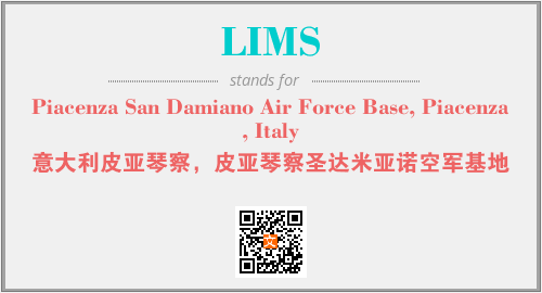 上述内容是“Piacenza San Damiano Air Force Base, Piacenza, Italy”作为“LIMS”的缩写,解释为“意大利皮亚琴察,皮亚琴察圣达米亚诺空军基地”时的信息,以及英文缩略词LIMS所代表的英文单词,其对应的中文拼音、详细解释以及在英文中的流行度和相关分类、应用领域及应用示例等。