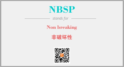 英文缩略词“NBSP”经常作为“Non breaking”的英文缩写来使用,中文表示:“非破坏性”。本文将详细介绍英文缩写词NBSP所代表英文单词,其对应的中文拼音、详细解释以及在英语中的流行度。此外,还有关于缩略词NBSP的分类、应用领域及相关应用示例等。