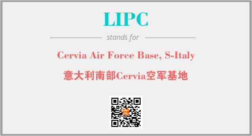 上述内容是“Cervia Air Force Base, S-Italy”作为“LIPC”的缩写,解释为“意大利南部Cervia空军基地”时的信息,以及英文缩略词LIPC所代表的英文单词,其对应的中文拼音、详细解释以及在英文中的流行度和相关分类、应用领域及应用示例等。