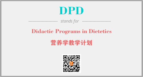 以上为Didactic Programs in Dietetics英文缩略词DPD的中文解释,以及该英文缩写在英语的流行度、分类和应用领域方面的信息。