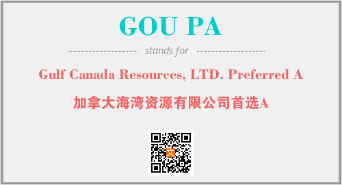 上述内容是“Gulf Canada Resources, LTD. Preferred A”作为“GOU PA”的缩写,解释为“加拿大海湾资源有限公司首选A”时的信息,以及英文缩略词GOU PA所代表的英文单词,其对应的中文拼音、详细解释以及在英文中的流行度和相关分类、应用领域及应用示例等。