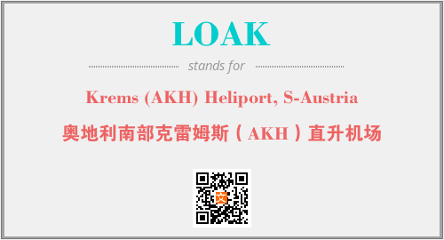 上述内容是“Krems (AKH) Heliport, S-Austria”作为“LOAK”的缩写,解释为“奥地利南部克雷姆斯(AKH)直升机场”时的信息,以及英文缩略词LOAK所代表的英文单词,其对应的中文拼音、详细解释以及在英文中的流行度和相关分类、应用领域及应用示例等。