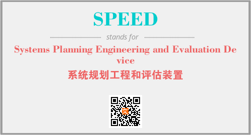 上述内容是“Systems Planning Engineering and Evaluation Device”作为“SPEED”的缩写,解释为“系统规划工程和评估装置”时的信息,以及英文缩略词SPEED所代表的英文单词,其对应的中文拼音、详细解释以及在英文中的流行度和相关分类、应用领域及应用示例等。