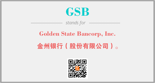 上述内容是“Golden State Bancorp, Inc.”作为“GSB”的缩写,解释为“金州银行(股份有限公司)。”时的信息,以及英文缩略词GSB所代表的英文单词,其对应的中文拼音、详细解释以及在英文中的流行度和相关分类、应用领域及应用示例等。