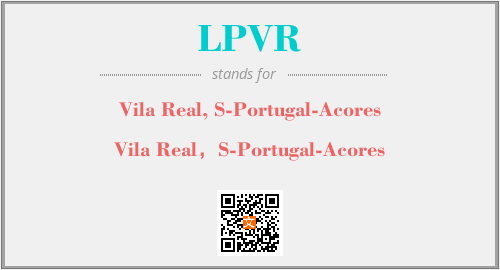上述内容是“Vila Real, S-Portugal-Acores”作为“LPVR”的缩写,解释为“Vila Real,S-Portugal-Acores”时的信息,以及英文缩略词LPVR所代表的英文单词,其对应的中文拼音、详细解释以及在英文中的流行度和相关分类、应用领域及应用示例等。