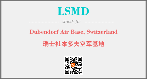 英文缩略词“LSMD”经常作为“Dubendorf Air Base, Switzerland”的英文缩写来使用,中文表示:“瑞士杜本多夫空军基地”。本文将详细介绍英文缩写词LSMD所代表英文单词,其对应的中文拼音、详细解释以及在英语中的流行度。此外,还有关于缩略词LSMD的分类、应用领域及相关应用示例等。