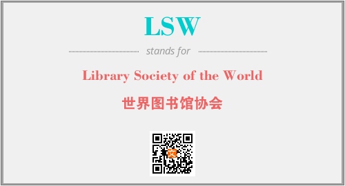 上述内容是“Library Society of the World”作为“LSW”的缩写,解释为“世界图书馆协会”时的信息,以及英文缩略词LSW所代表的英文单词,其对应的中文拼音、详细解释以及在英文中的流行度和相关分类、应用领域及应用示例等。