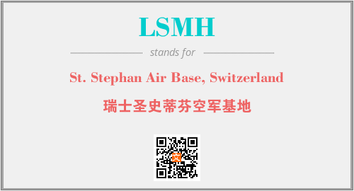 英文缩略词“LSMH”经常作为“St. Stephan Air Base, Switzerland”的英文缩写来使用,中文表示:“瑞士圣史蒂芬空军基地”。本文将详细介绍英文缩写词LSMH所代表英文单词,其对应的中文拼音、详细解释以及在英语中的流行度。此外,还有关于缩略词LSMH的分类、应用领域及相关应用示例等。