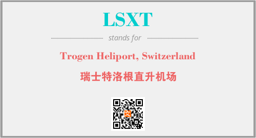 英文缩略词“LSXT”经常作为“Trogen Heliport, Switzerland”的英文缩写来使用,中文表示:“瑞士特洛根直升机场”。本文将详细介绍英文缩写词LSXT所代表英文单词,其对应的中文拼音、详细解释以及在英语中的流行度。此外,还有关于缩略词LSXT的分类、应用领域及相关应用示例等。
