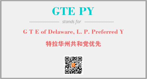 上述内容是“G T E of Delaware, L. P. Preferred Y”作为“GTE PY”的缩写,解释为“特拉华州共和党优先”时的信息,以及英文缩略词GTE PY所代表的英文单词,其对应的中文拼音、详细解释以及在英文中的流行度和相关分类、应用领域及应用示例等。