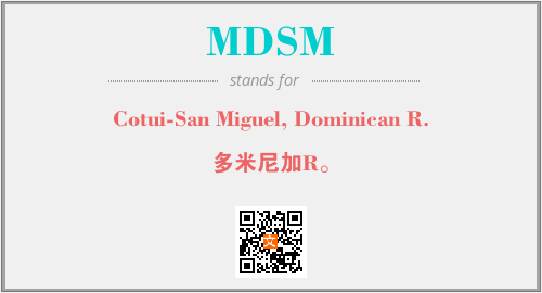 上述内容是“Cotui-San Miguel, Dominican R.”作为“MDSM”的缩写,解释为“多米尼加R。”时的信息,以及英文缩略词MDSM所代表的英文单词,其对应的中文拼音、详细解释以及在英文中的流行度和相关分类、应用领域及应用示例等。