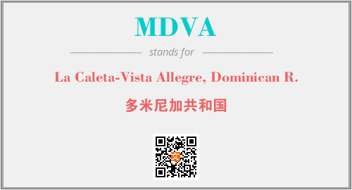 上述内容是“La Caleta-Vista Allegre, Dominican R.”作为“MDVA”的缩写,解释为“多米尼加共和国”时的信息,以及英文缩略词MDVA所代表的英文单词,其对应的中文拼音、详细解释以及在英文中的流行度和相关分类、应用领域及应用示例等。