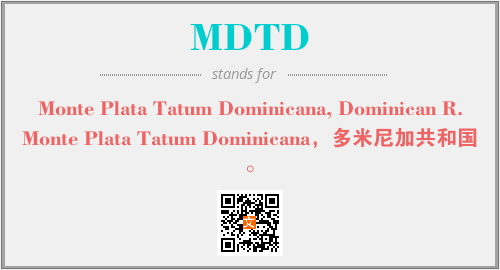 上述内容是“Monte Plata Tatum Dominicana, Dominican R.”作为“MDTD”的缩写,解释为“Monte Plata Tatum Dominicana,多米尼加共和国。”时的信息,以及英文缩略词MDTD所代表的英文单词,其对应的中文拼音、详细解释以及在英文中的流行度和相关分类、应用领域及应用示例等。